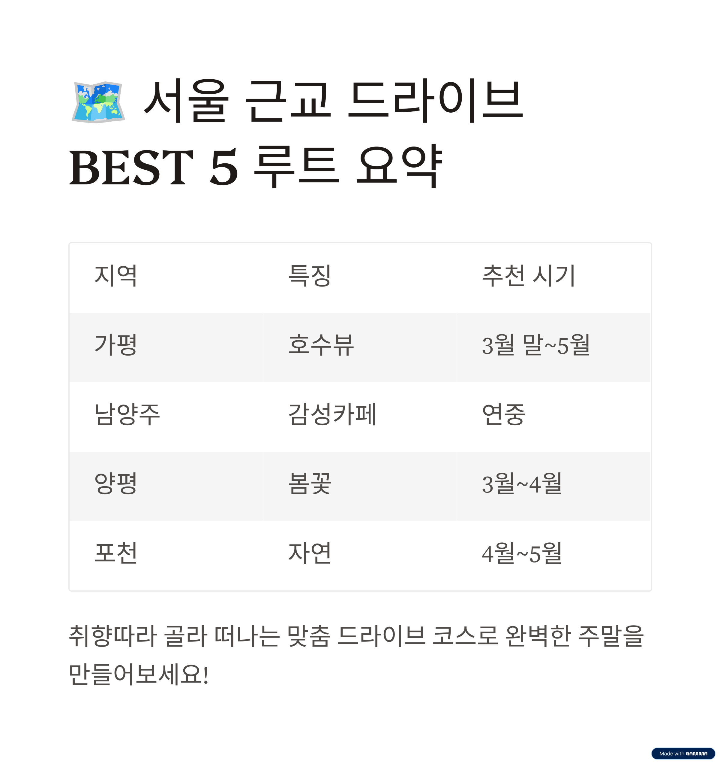 - 3. 당일치기로 떠나는 서울 근교 BEST 5 루트 요약