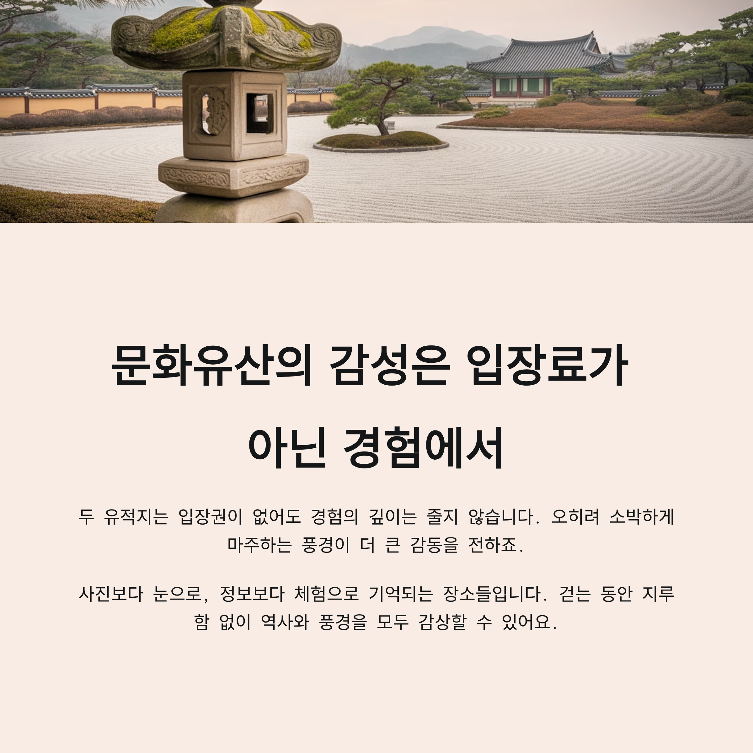 두 유적지는 입장권이 없어도 경험의 깊이는 줄지 않습니다.