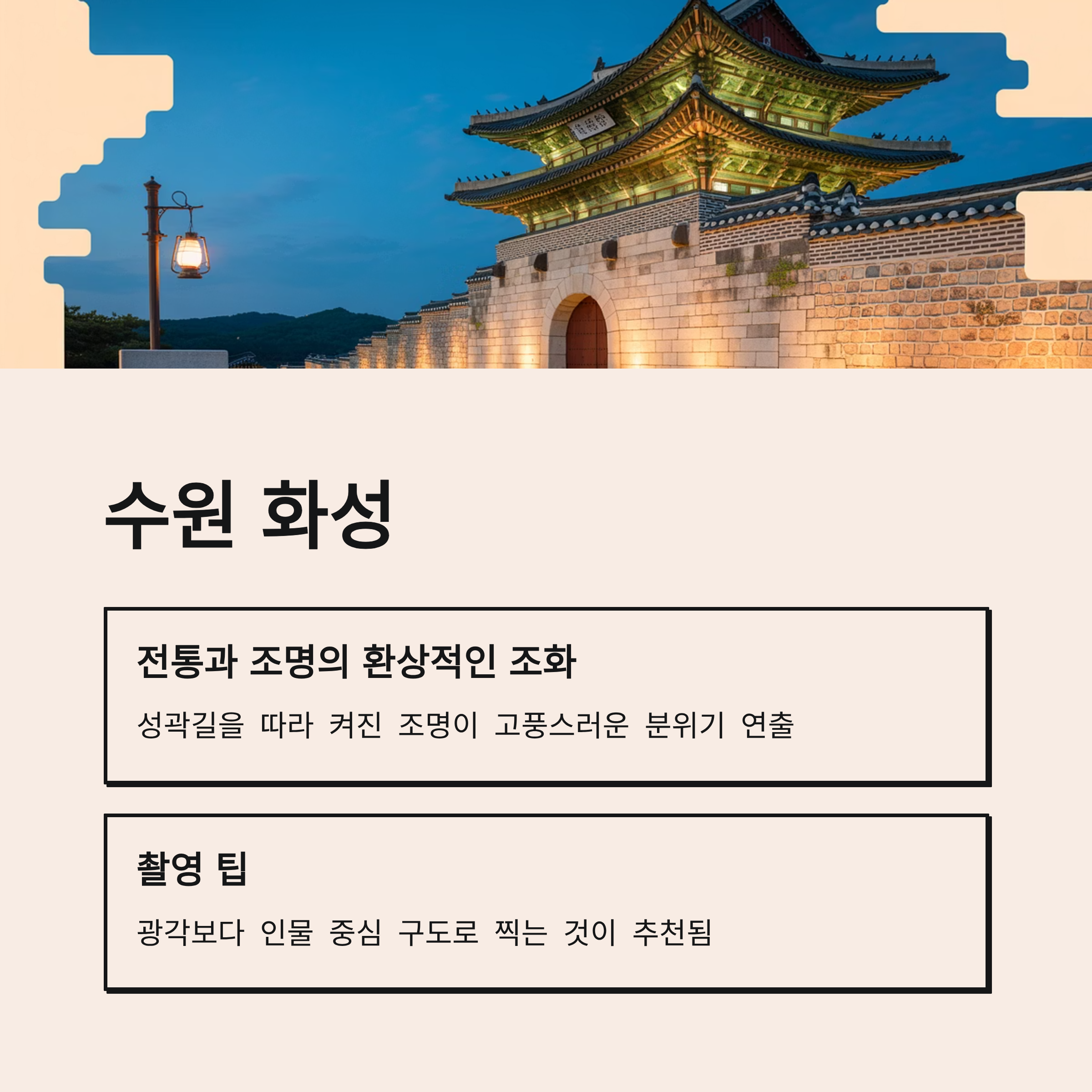 | 수원 | 화성 성곽길 | 전통, 조명 |
