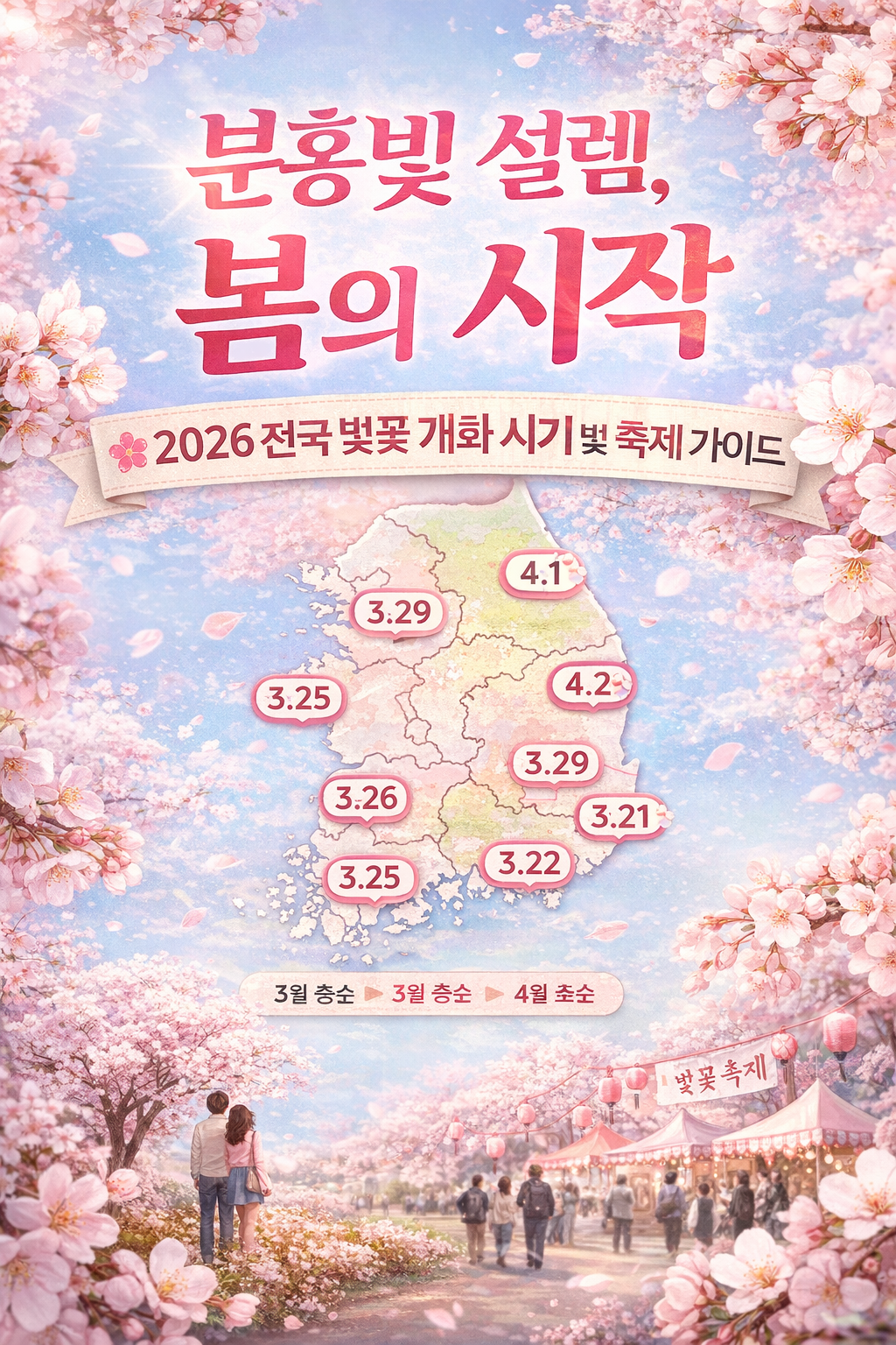 | "분홍빛 설렘, 벚꽃 엔딩을 기다리며"2026 전국 벚꽃 개화 시기 및 명당 가이드 (1) | 2026.03.07 |